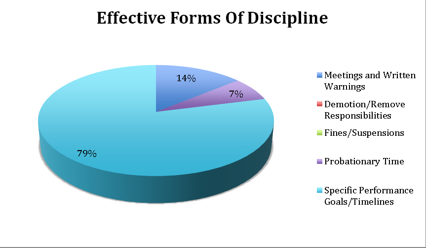 The goal of most supervisors is to avoid problems before they become problems. The majority of HR Insider readers, 79% indicated that offering employees specific performance goals, often a first step before an official disciplinary step was the most effective way of improving performance. Sometimes formal disciplinary actions are useful and 14% of readers indicated that a formal meeting and a warning (often a second step in a disciplinary process) and 7% indicated that placing an employee on probation (often a step the comes after a formal warning) is required to improve performance.