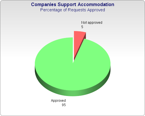 Perhaps not surprising, these nominal costs, as well as a desire to comply with the law and treat workers well, are resulting in high levels of accommodation for people with disabilities. A recent survey of 243 large and mid-size employers, conducted by the Disability Management Employer Coalition (DMEC), finds that 95 percent of worker accommodation requests are approved by management.